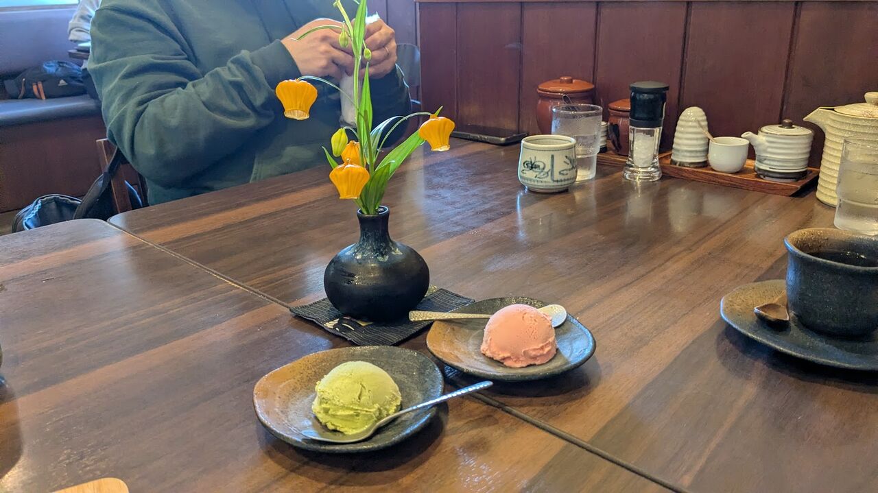 (コーヒー。リンゴジュース。アイスクリーム(抹茶。あまおう苺)から)