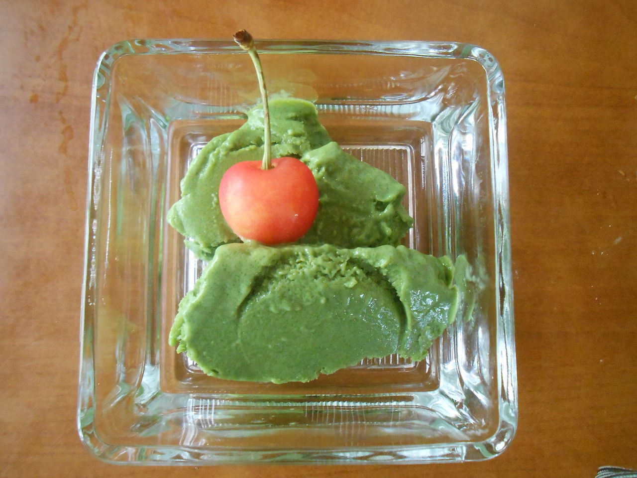 この後、冷凍庫で3時間で抹茶アイスの出来上がりです