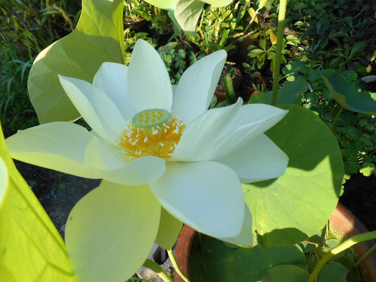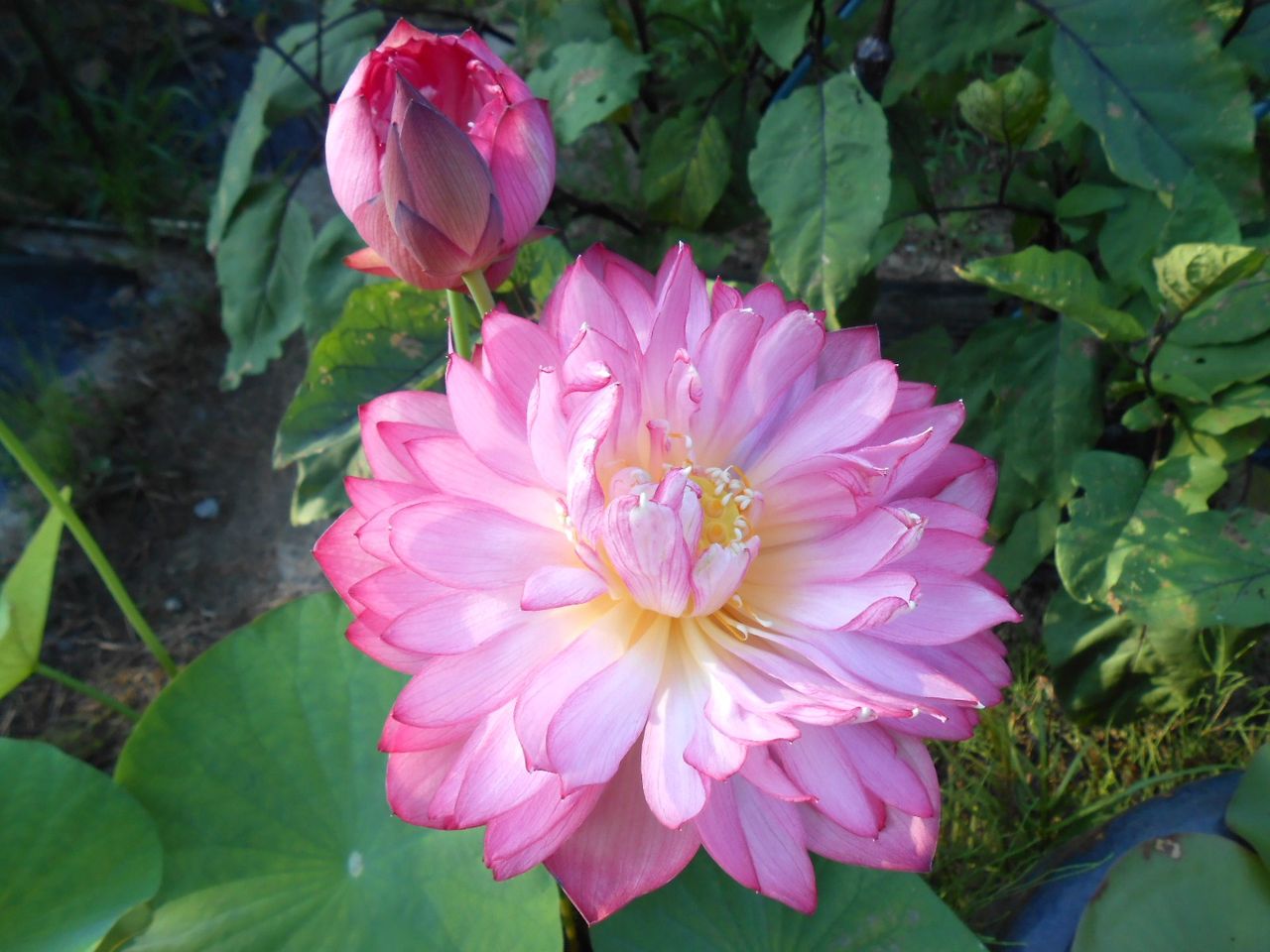 庭に大きな蓮の花が咲きました