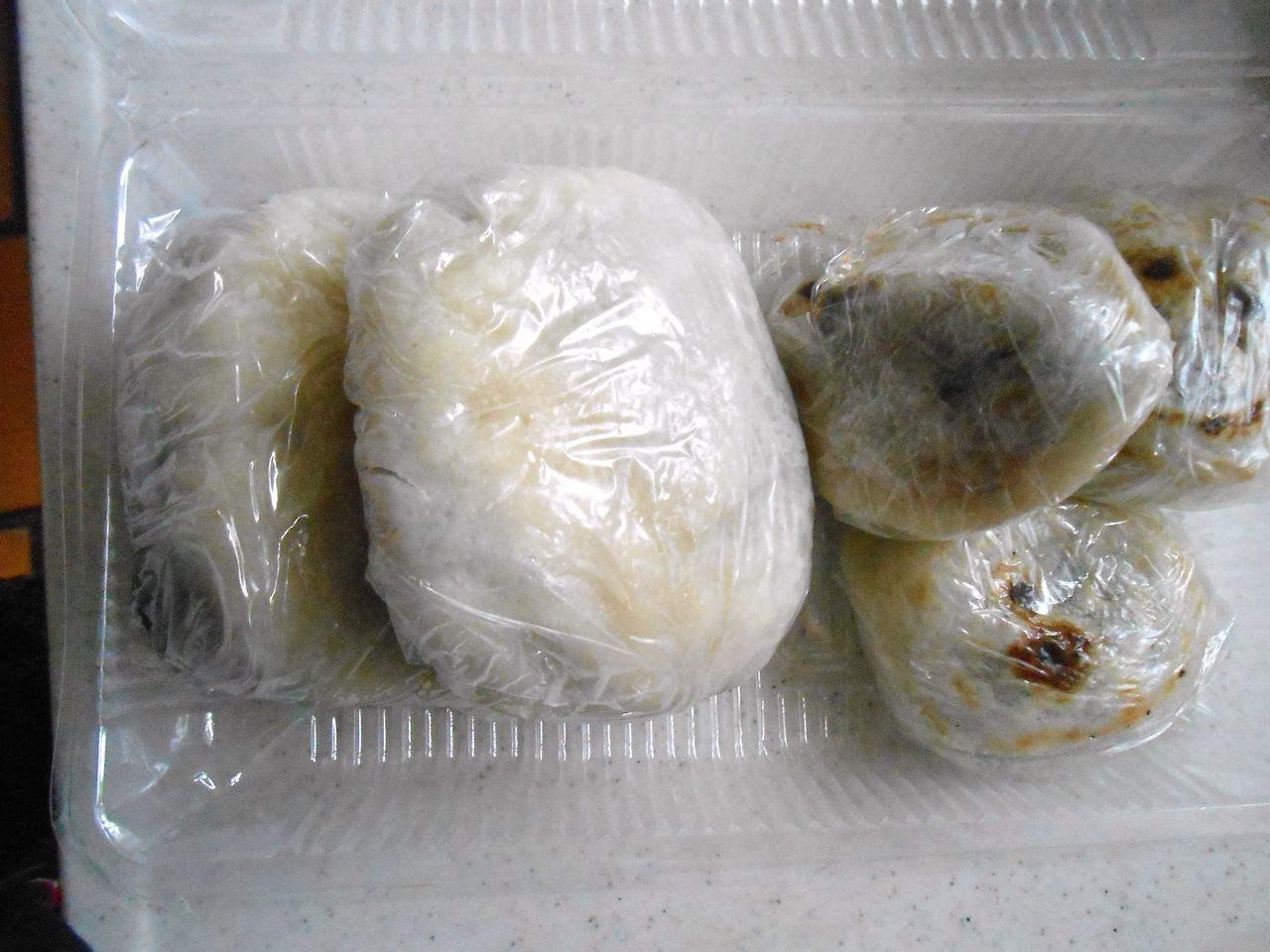 写真の大きい方が「いきなり団子」と呼ばれるもの小さなものは、大宰府のお土産で「梅が枝餅」