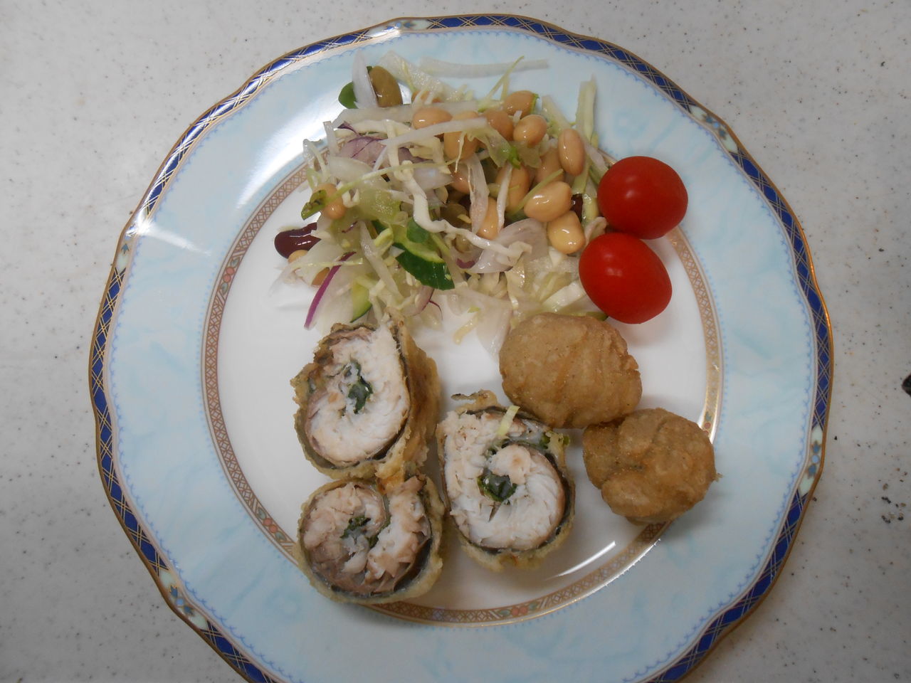 添えたサラダは、最近、サラダ用の豆とかにはまっていて