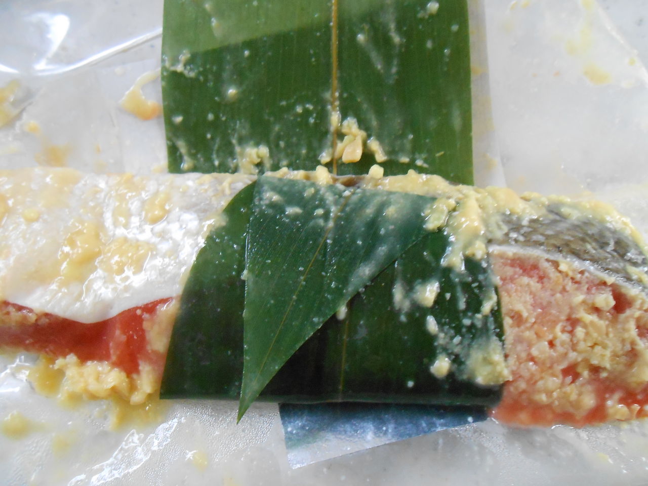 鯵に梅肉を塗って、大葉を挟みました(お魚の匂いを消すにはこの方法かな)