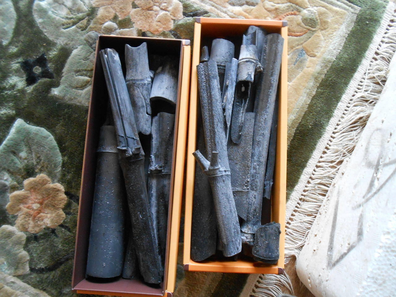 直径2cmくらいなか・・・細い竹の中に、水ようかんが詰まっています