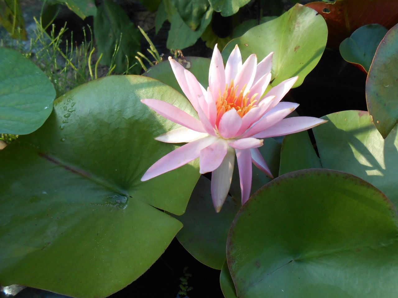蓮の花の隣には、今年たくさんの花を咲かせた睡蓮が