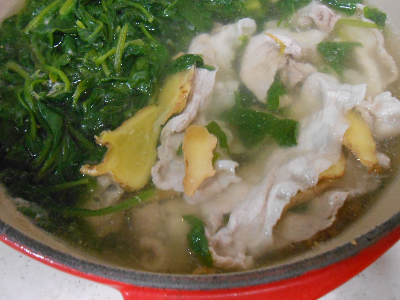 アッ!お鍋は、ホウレンソウと豚肉薄切りだけのシンプルな常夜鍋