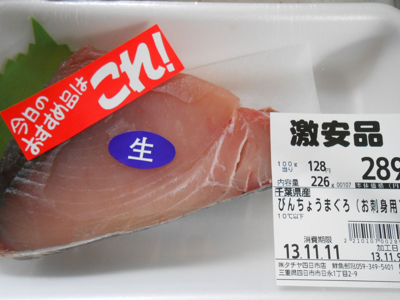 289円のまぐろのお刺身。198円の生しらす。どちらも大変に美味しゅうございました