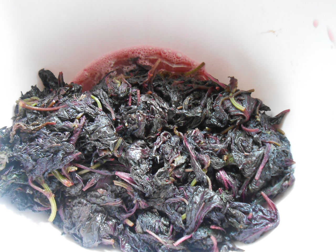 御手本には2週間との記載でしたが、たっぷりの梅酢が上がってきましたから、紫蘇をいれこむ作業をしました