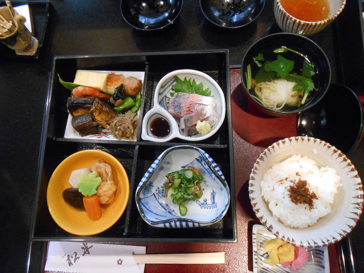 ランチは松花堂のお弁当。一種類のみ