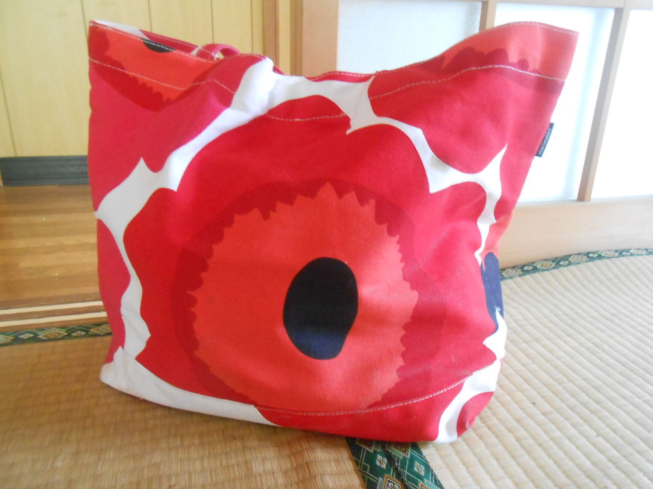 娘がくれた、赤のトートバックが気に入って、