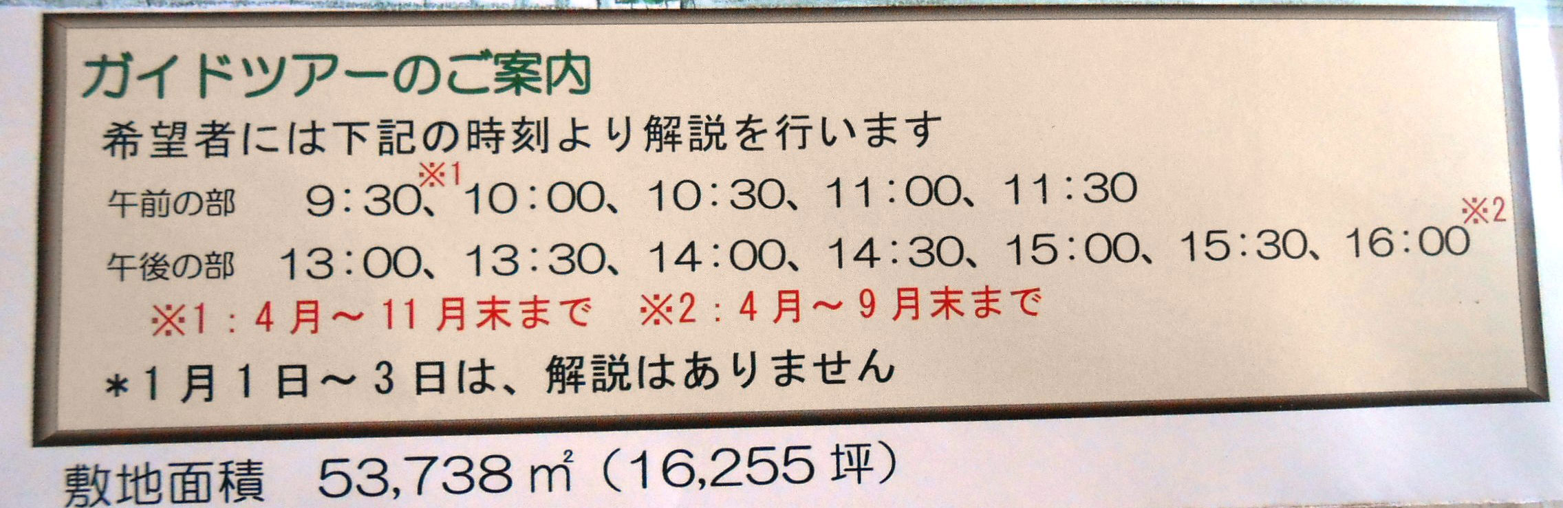 時間をきめて、場内を詳しく案内してくださいます(無料)が