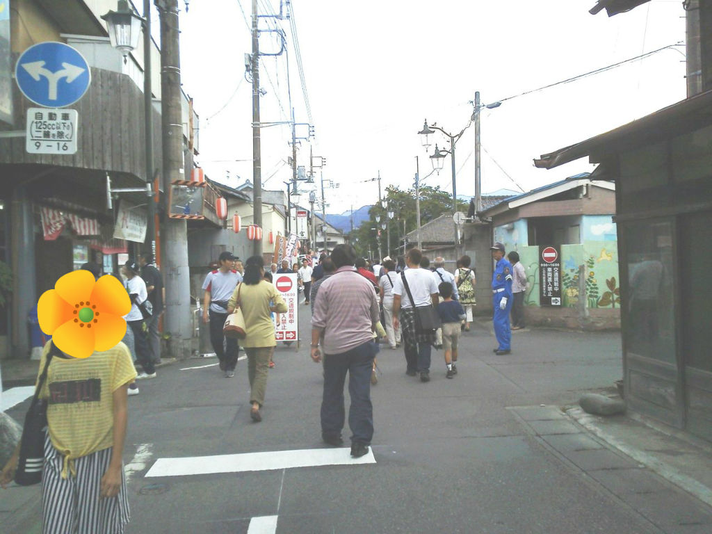 駐車場から、製糸場までの道。。道幅は広くありません。すごい人です