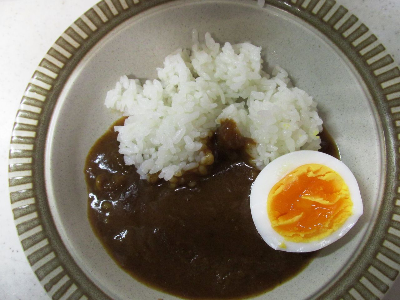 カレーに添えました。うまい具合に半熟になってます。これいいかも・・・