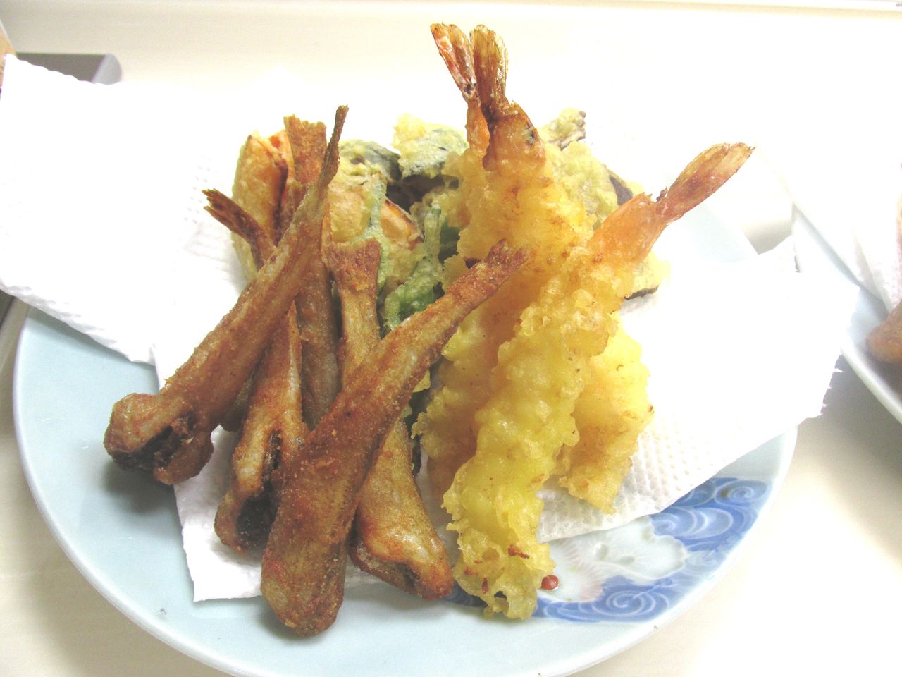写真の左。キスです。釣ってきたものです。から揚げにしました