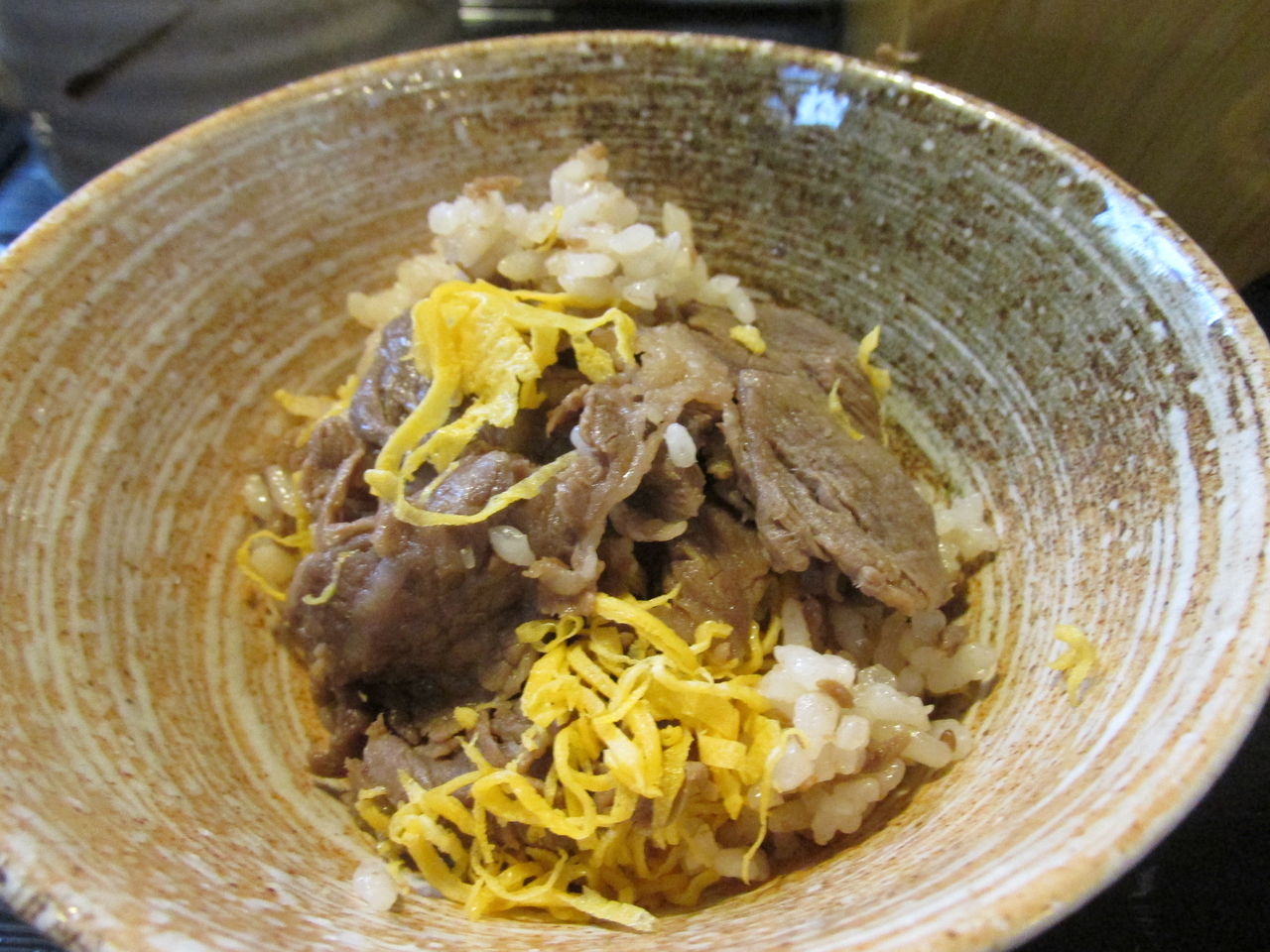 こちらの肉巻きは、ご飯にすき焼き風の味付けがされ