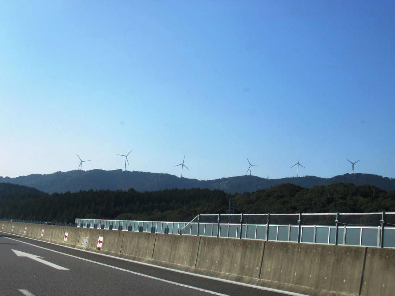 山の上に、たくさんの風力発電