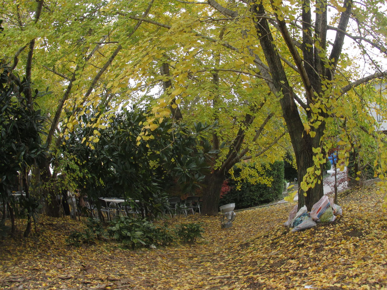 大きな木の下にテーブルなど用意されていて、