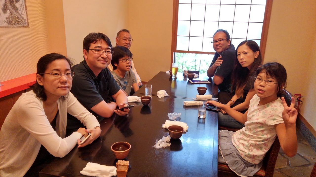 この日も夕食のお店で、父親と対戦してました。