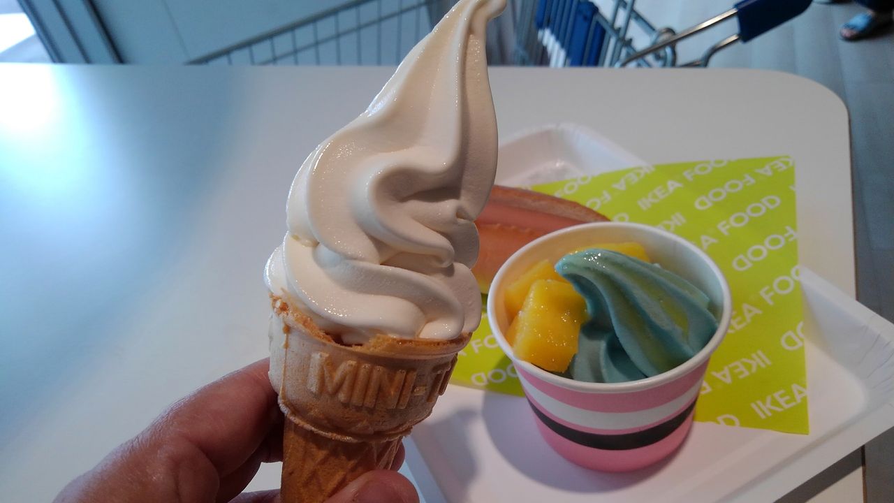 噂の80円ホットドッグと50円ソフトクリームは会計を済ませてすぐ前