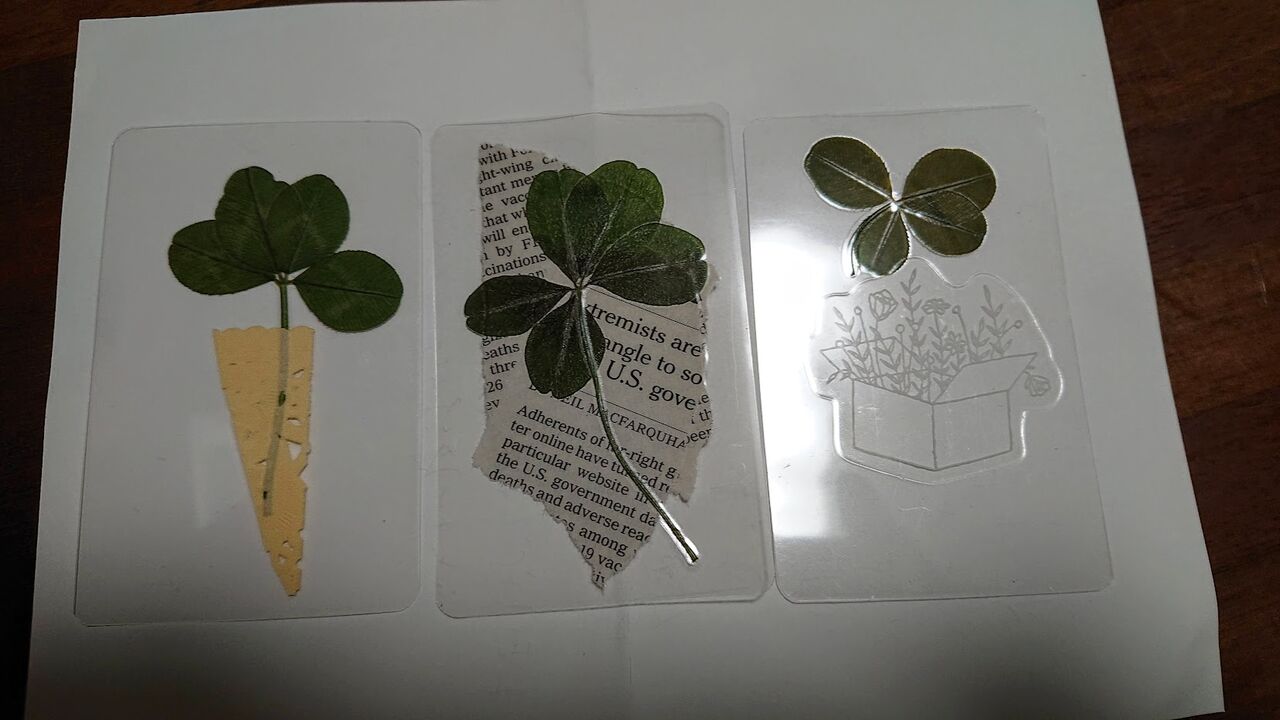 やっこちゃんから、四葉のクローバーをラミネートしたものが送られてきました