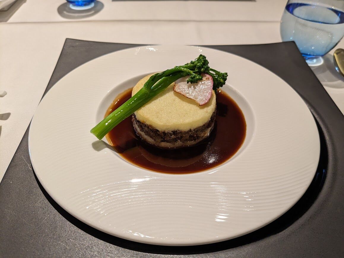 牛肉のひき肉の上にマッシュポテト