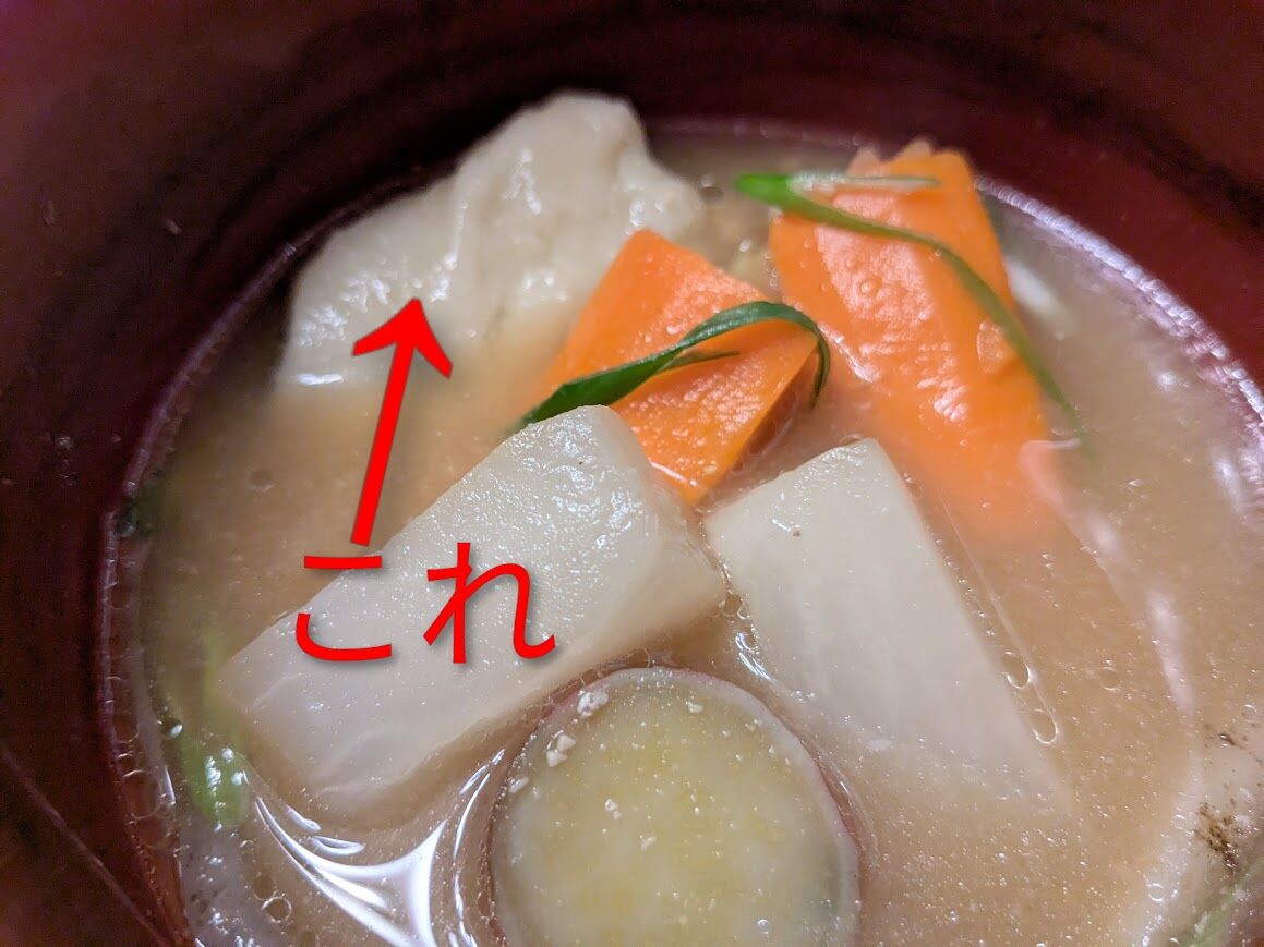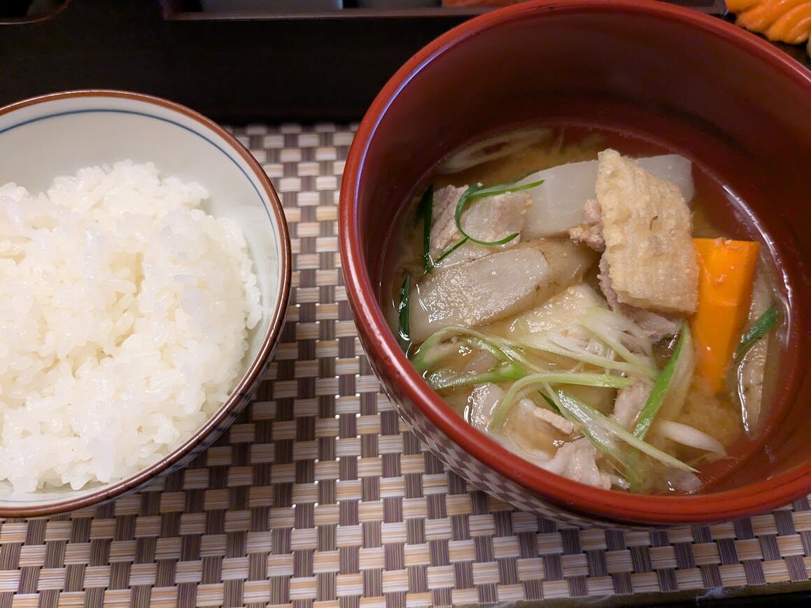 豚汁を添えました。大きめに切った根菜。豚汁の季節ですね