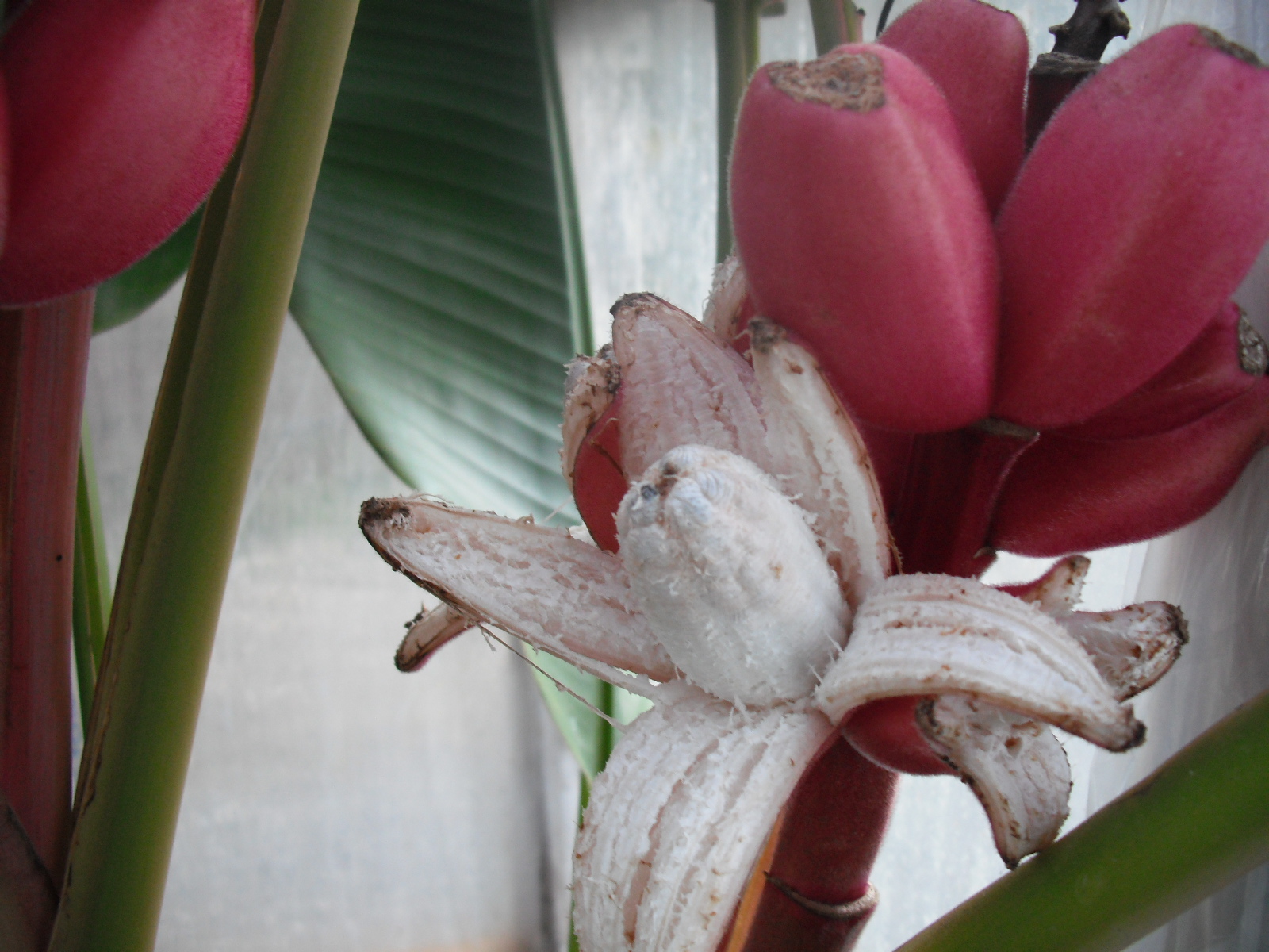 - バナナって黄色いものだと思っていたら、赤い皮なんですね~。