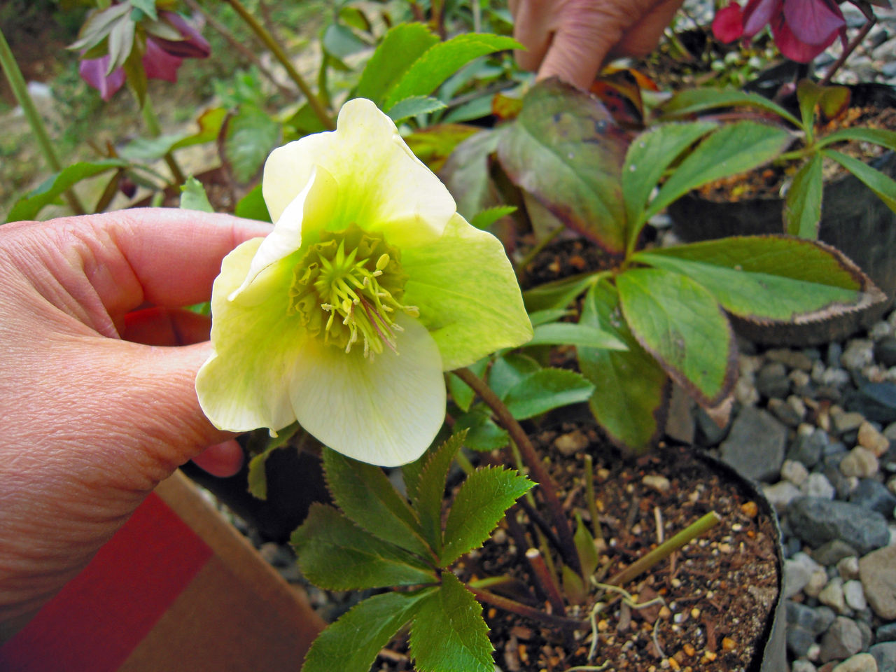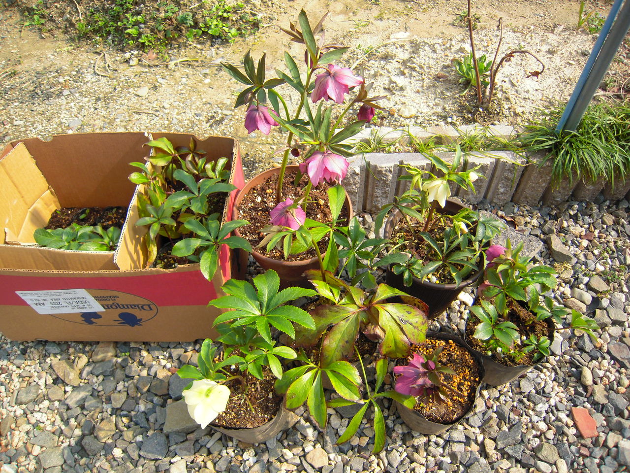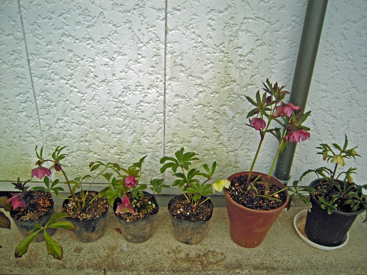 一列に並んだお嫁入りして来たクリスマスローズたち