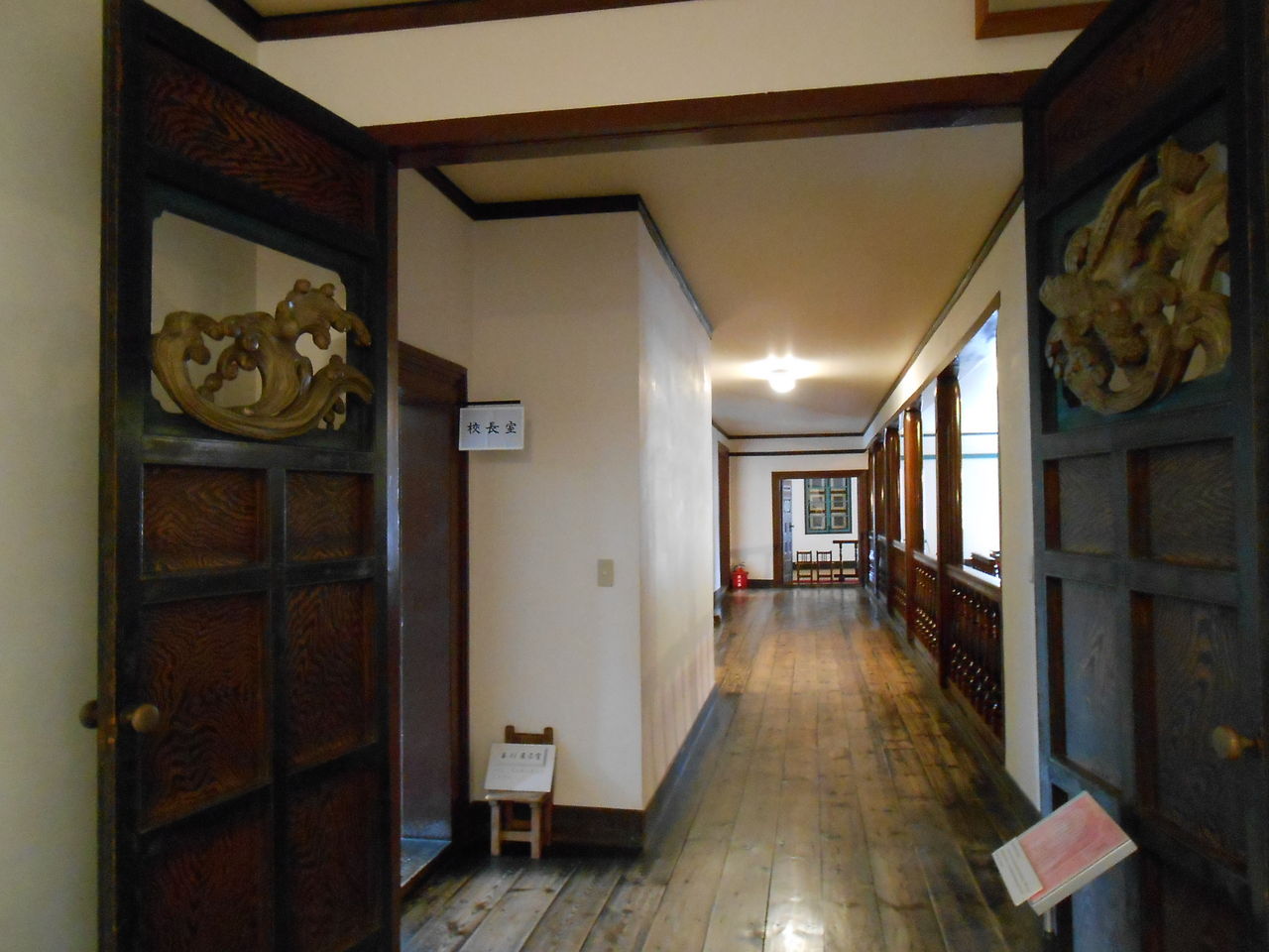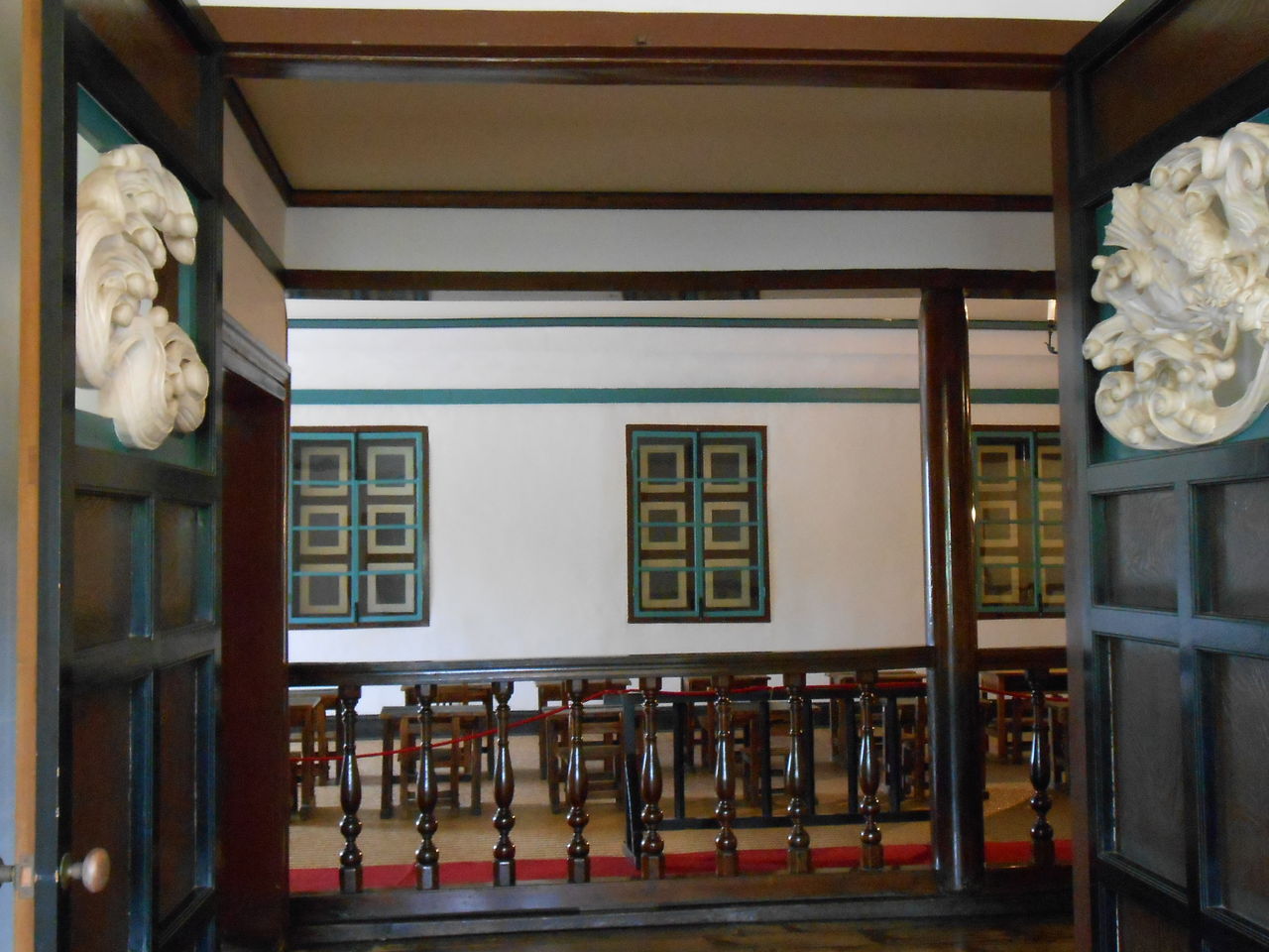 階段の手すりや、ドアの彫刻など