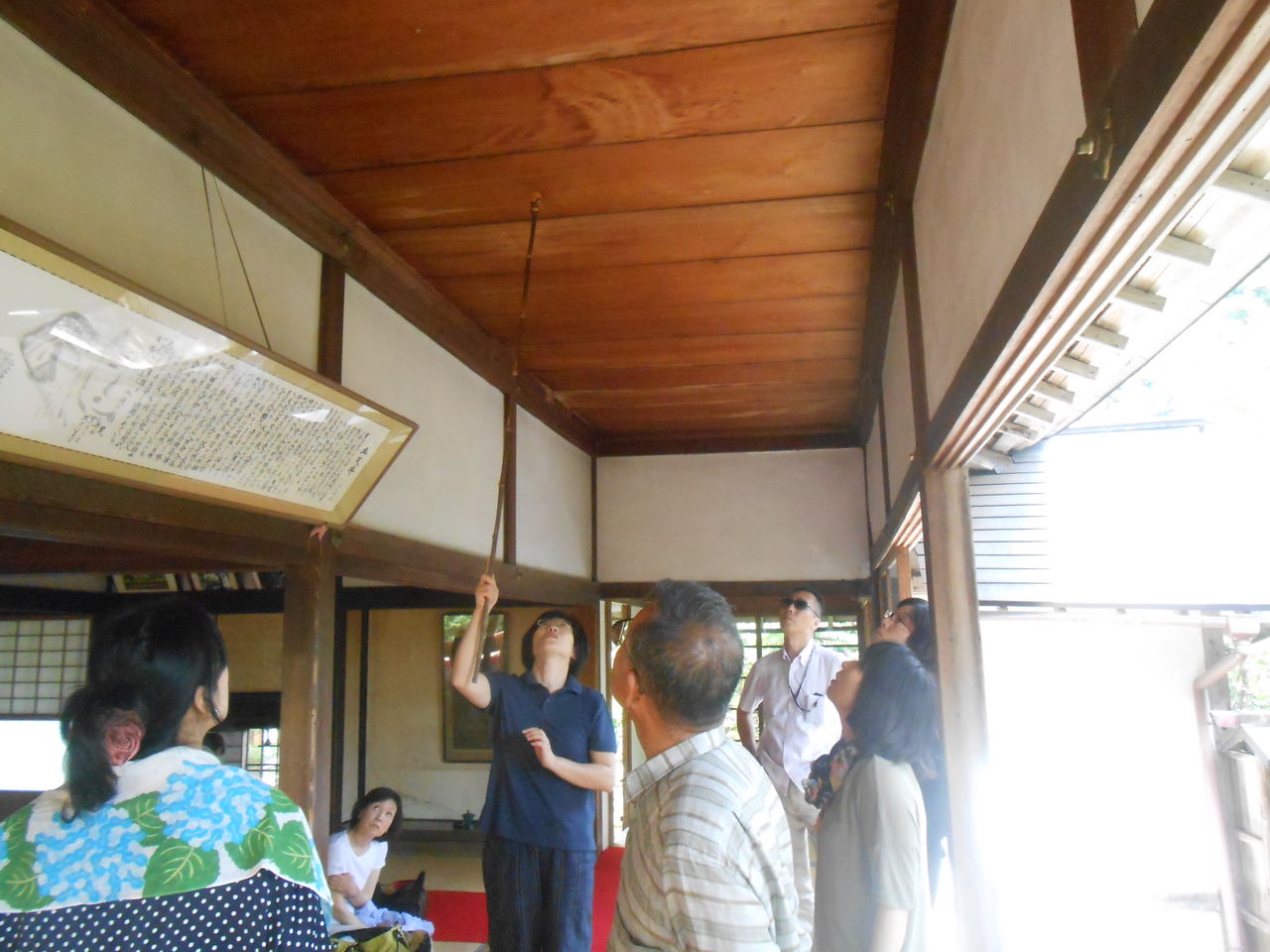 血痕の残る床板を、ここ宝泉院の天井の板に使用し、供養としている。