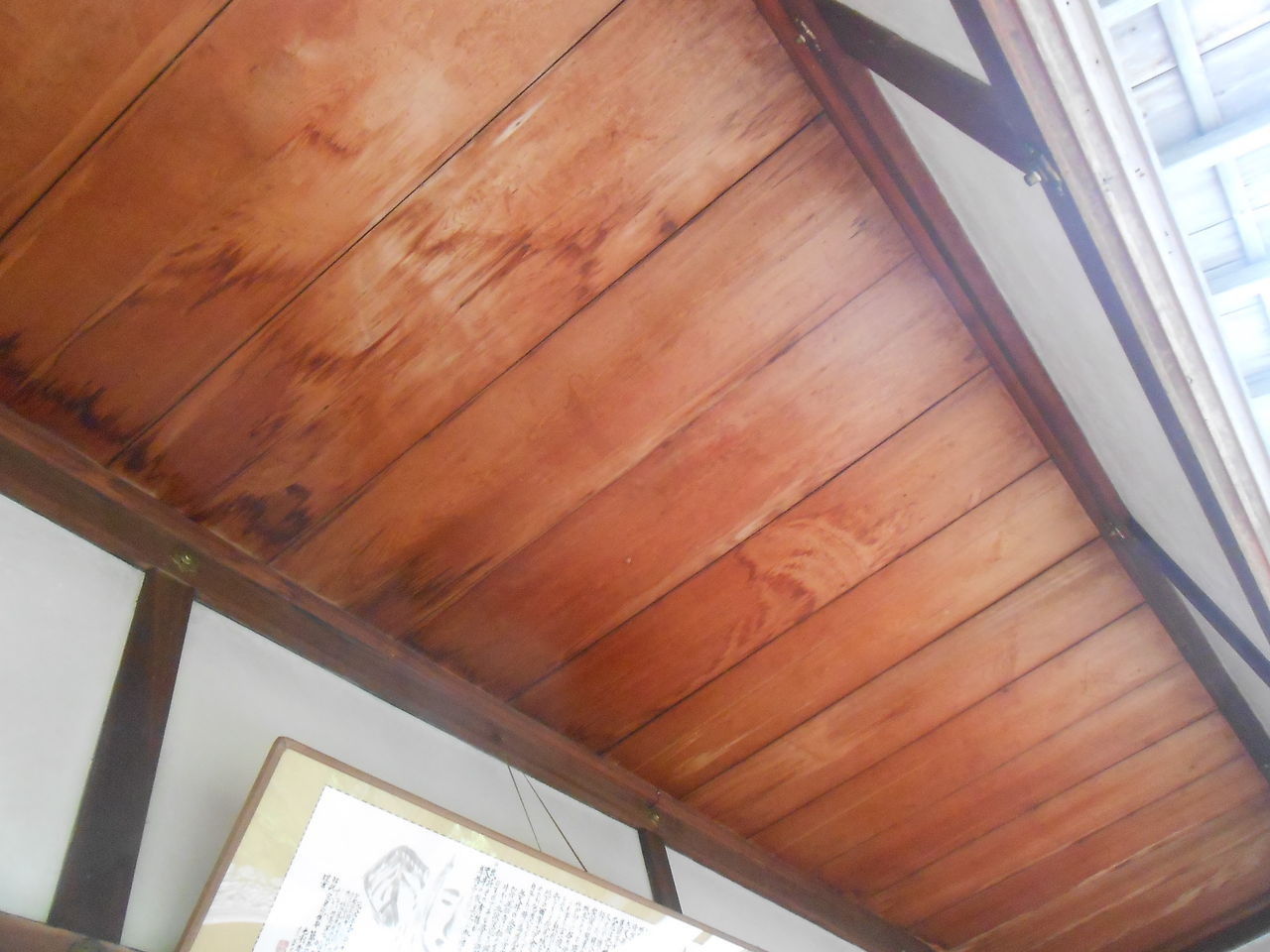 天井の板真上に血痕の顔、足、烏帽子などがくっきりと出ています。。との説明文