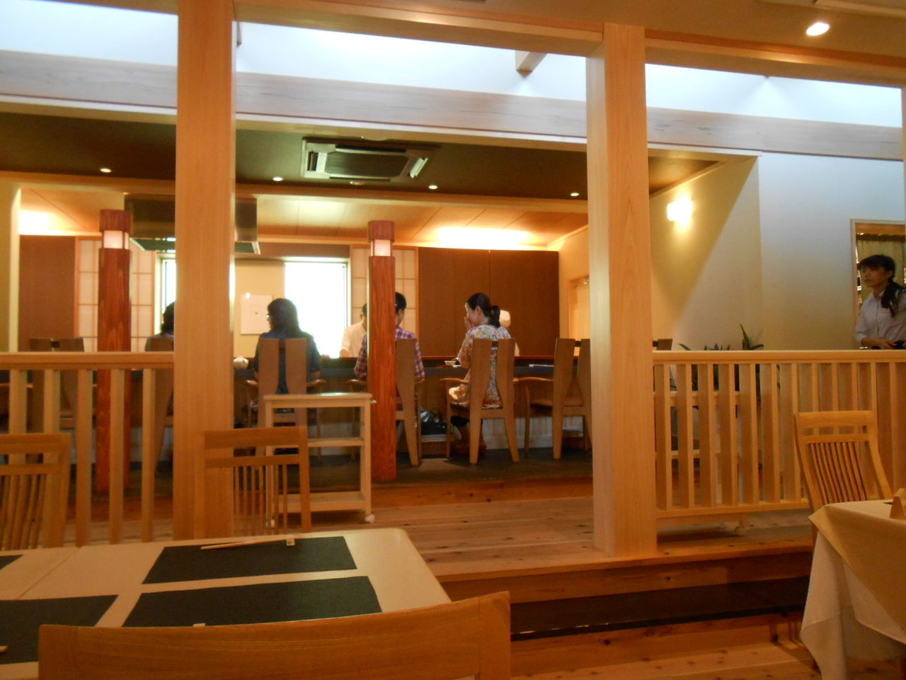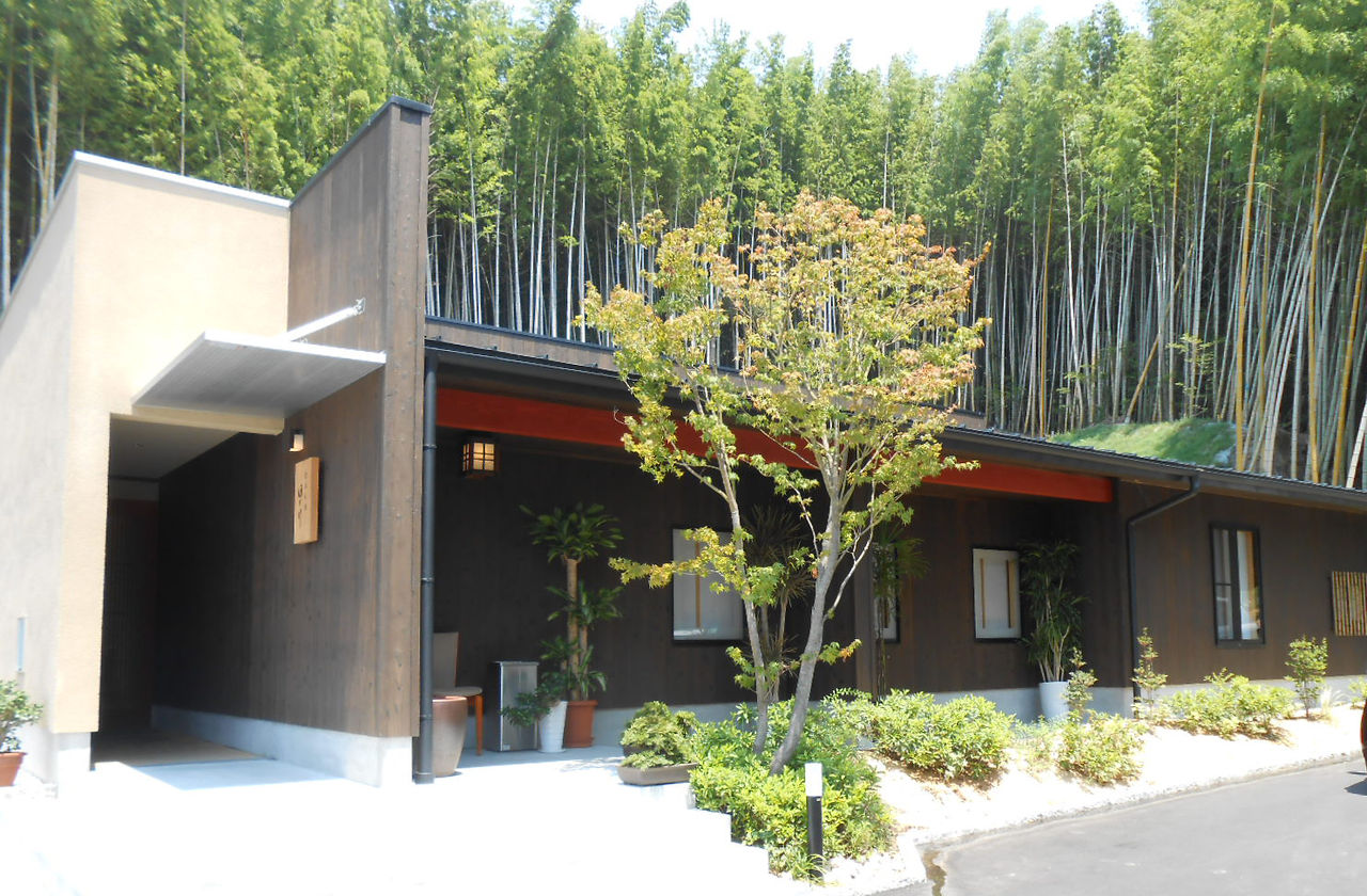 お店の裏手には見事な竹藪が広がります カウンター席。いす席。合わせて30席ほど