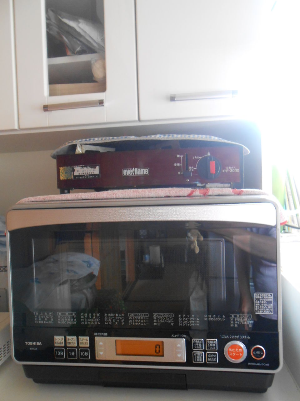 (台所のごちゃごちゃが、レンジに写ってしまって。。汗)