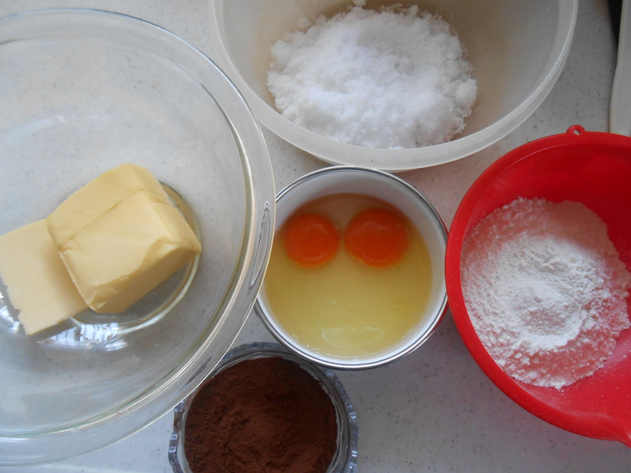 ココアを入れて泡立て器で、よく混ぜ、お砂糖も入れる