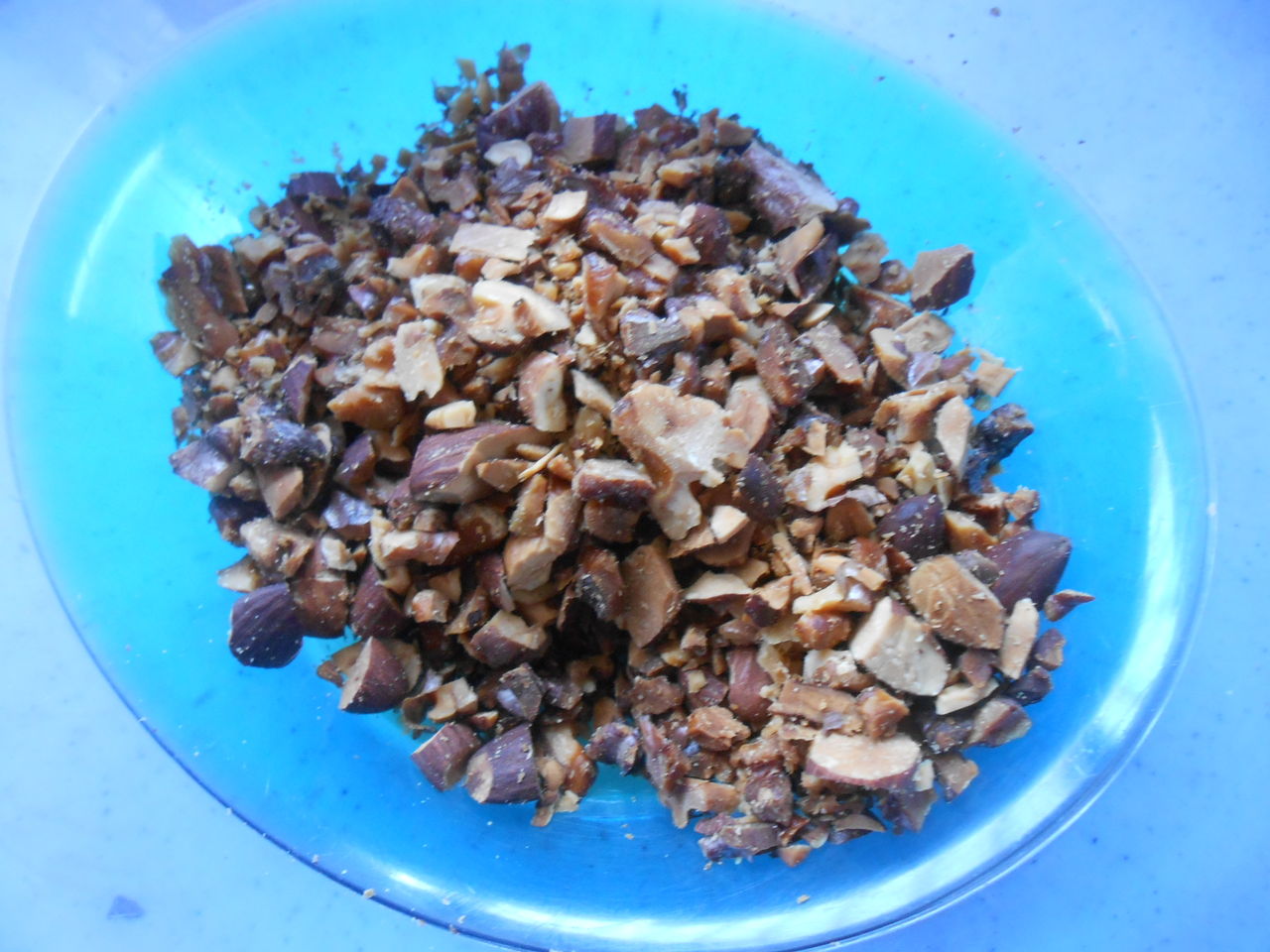 ①160度のオーブンで10分。くるみをカラ焼きし。刻む ↓