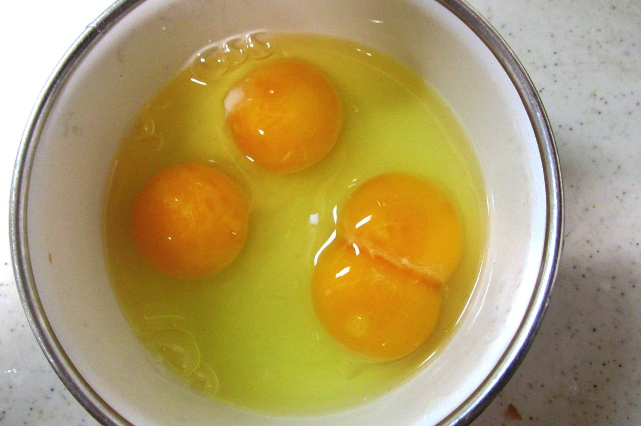 2つの黄身が出てくると思っていたら「あら!これは1個だわ」