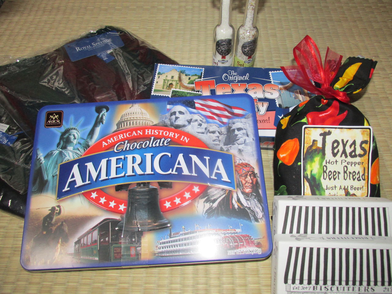 空港でまとめて買ったり、スーパーで買ったりしたものだそうです