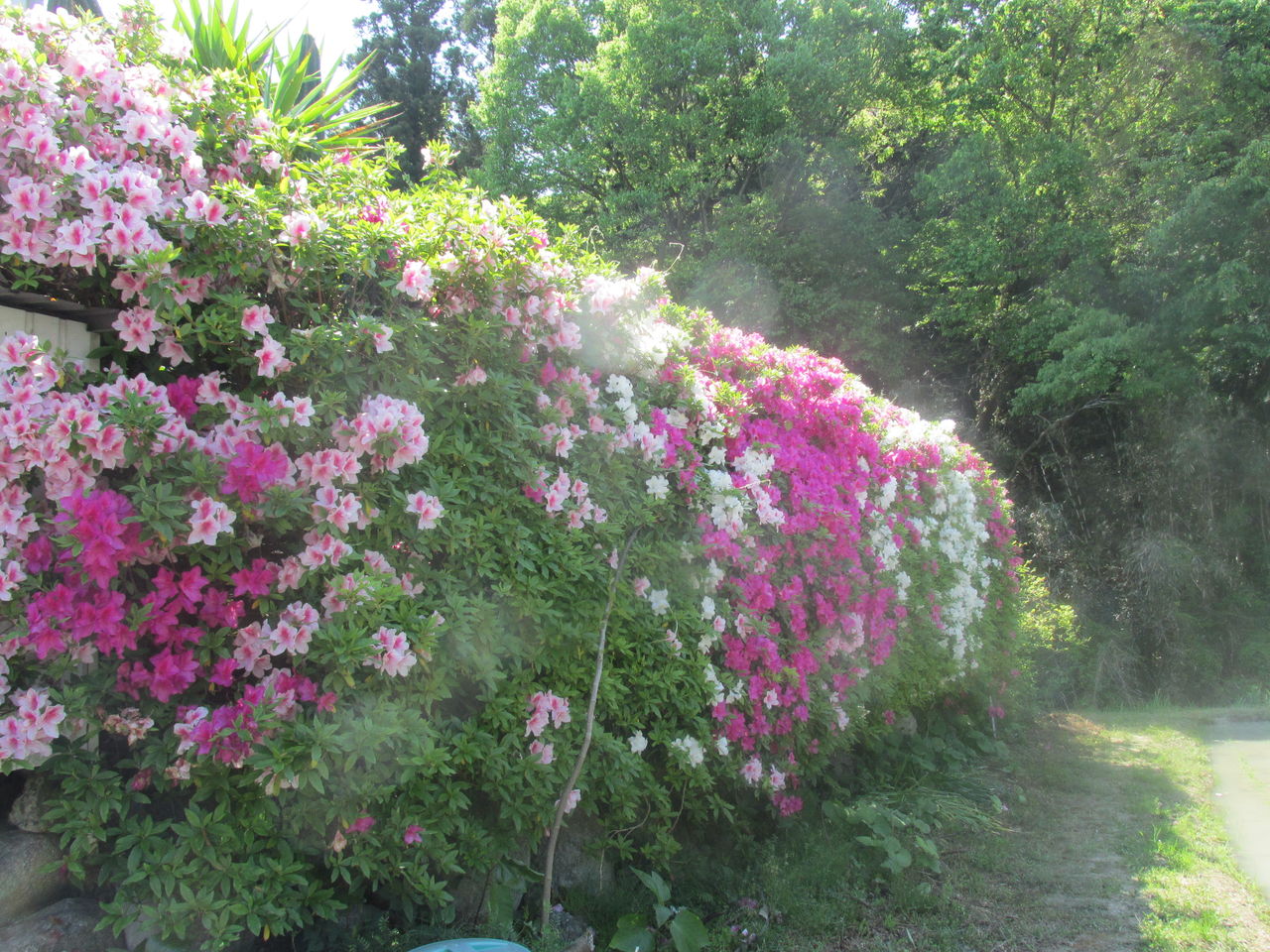 毎年、田植えの頃には生垣のつつじが、見事に満開を迎えます
