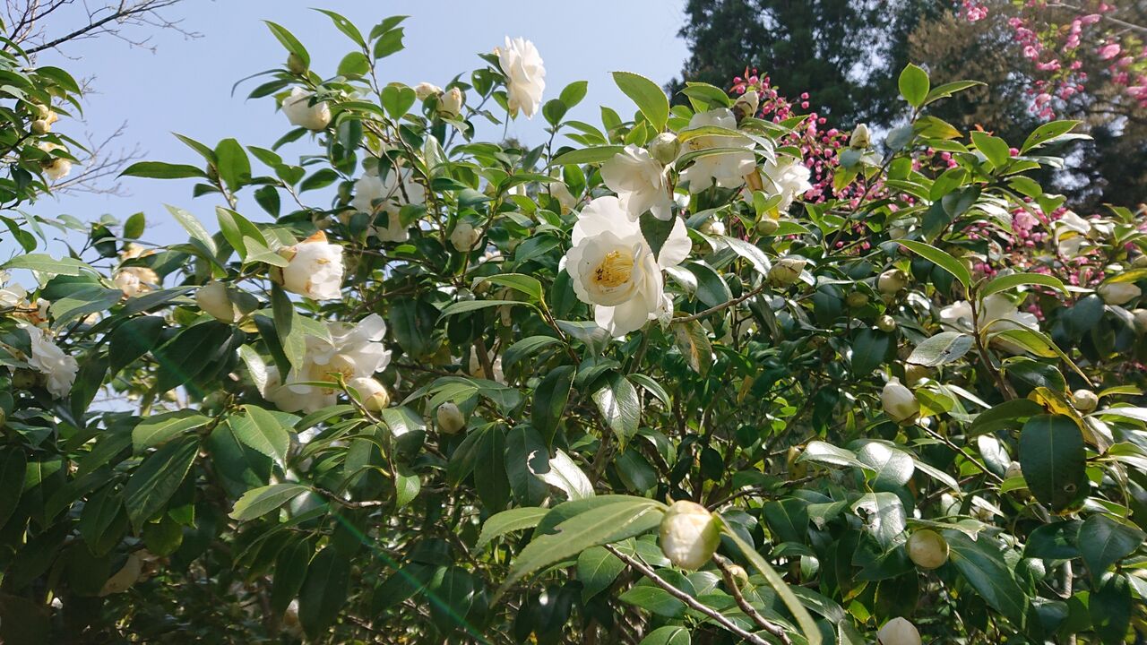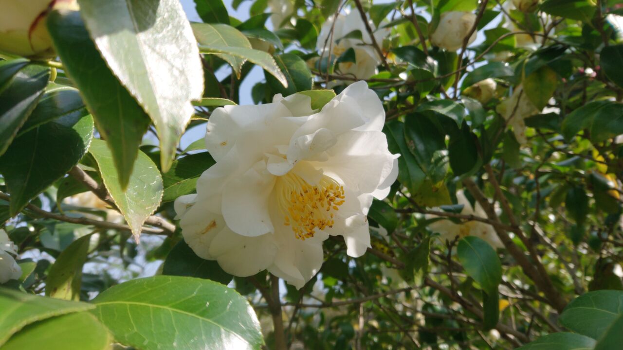 白の椿。大きな花をつけてます。