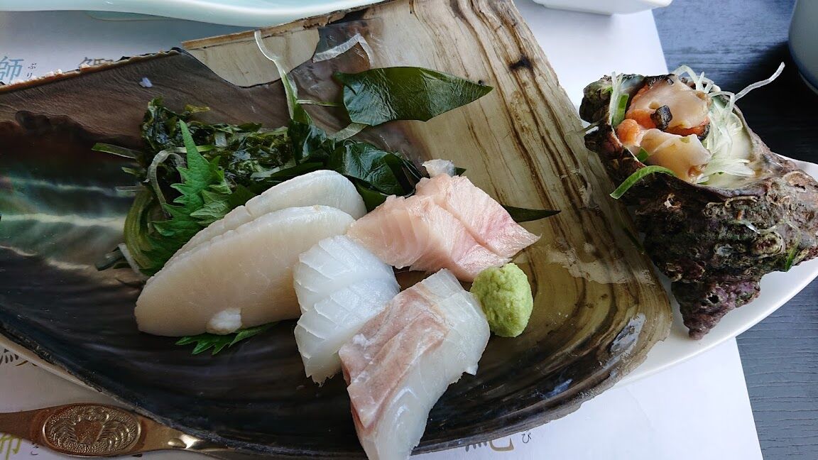 お刺身は平貝の貝殻に盛り付けられていました