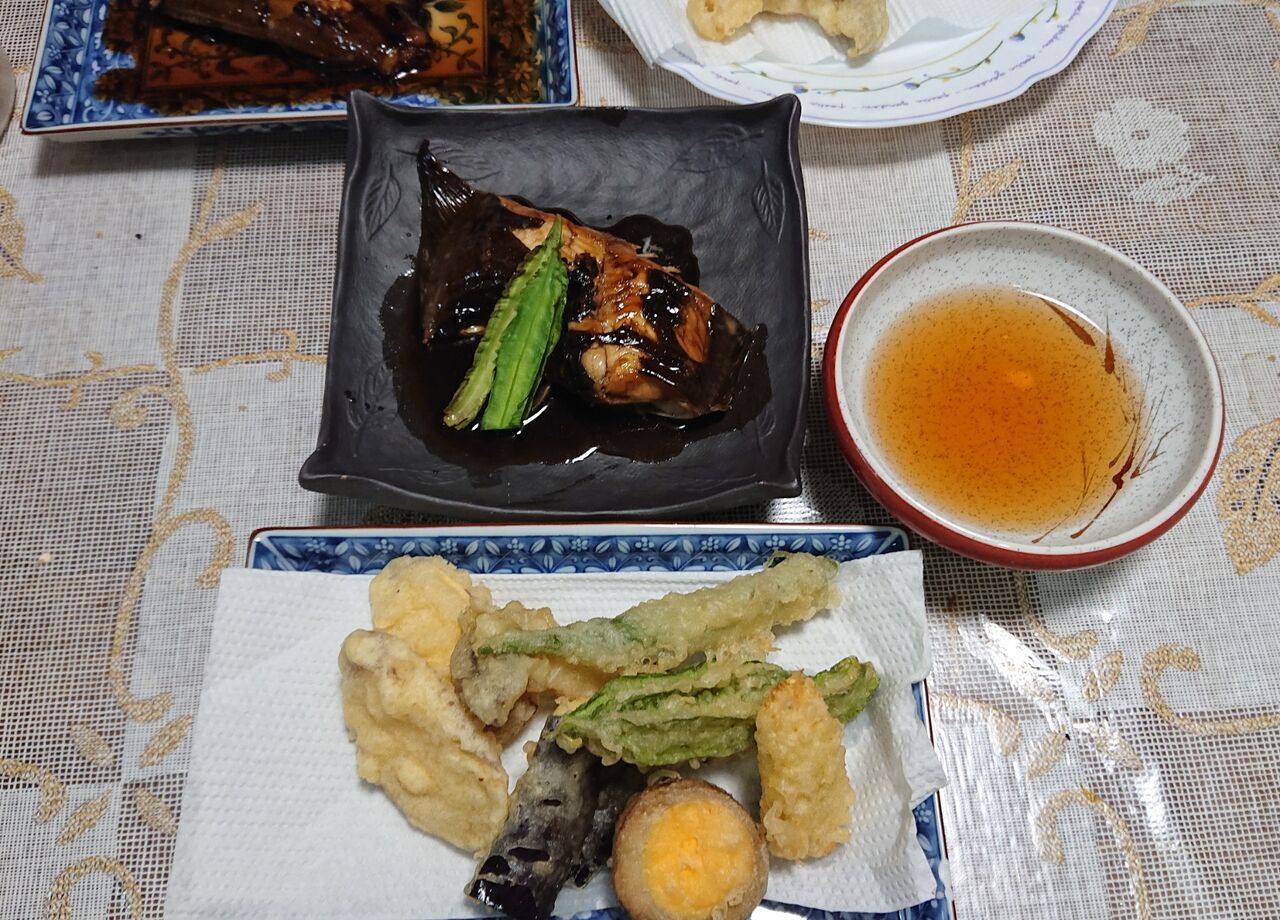野菜は胡麻和えか天ぷらや(笑)