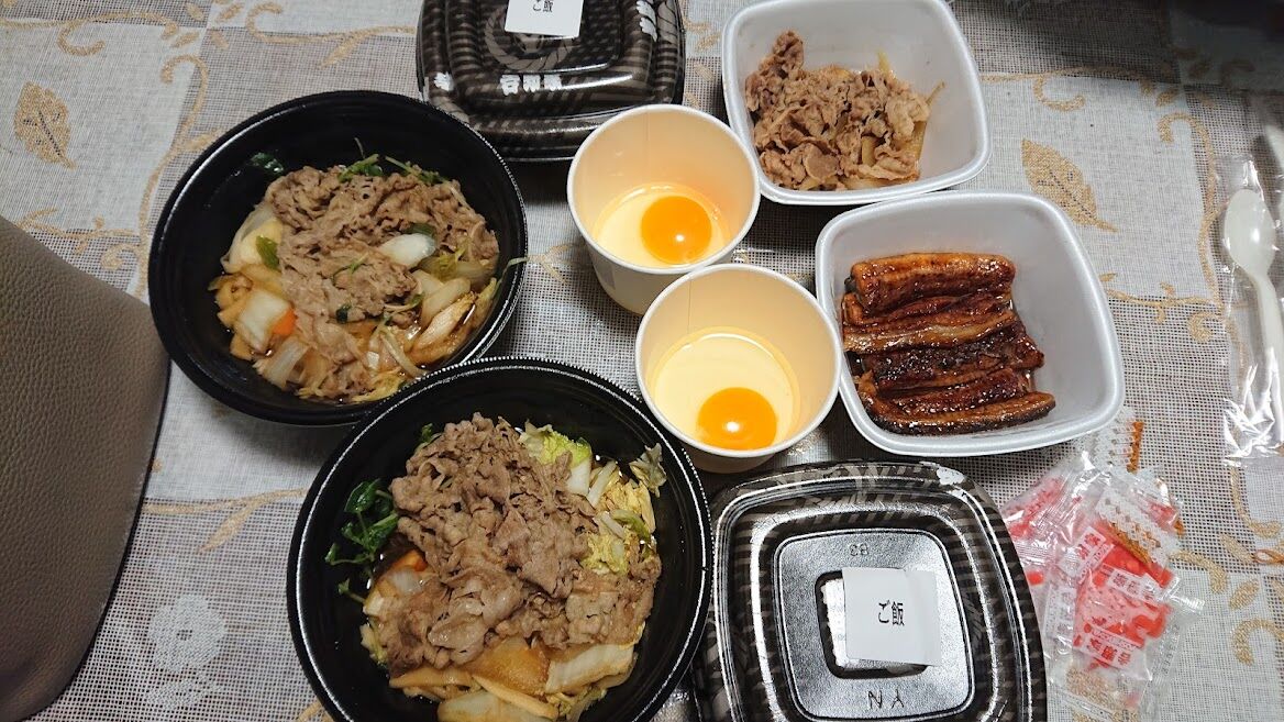 うなぎの蒲焼2切れ用と、牛皿普通盛り1皿