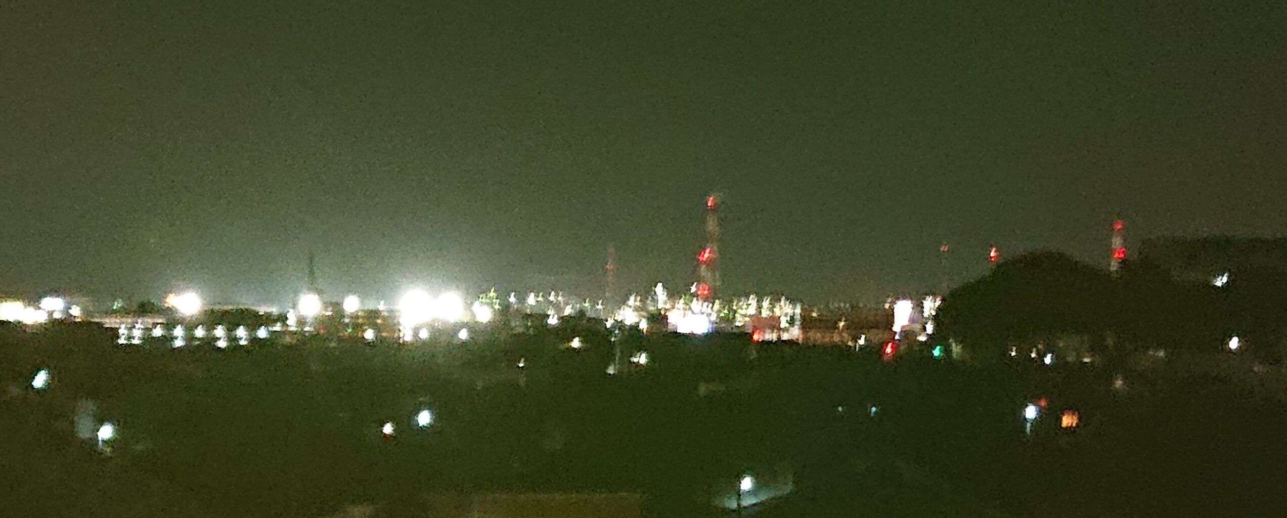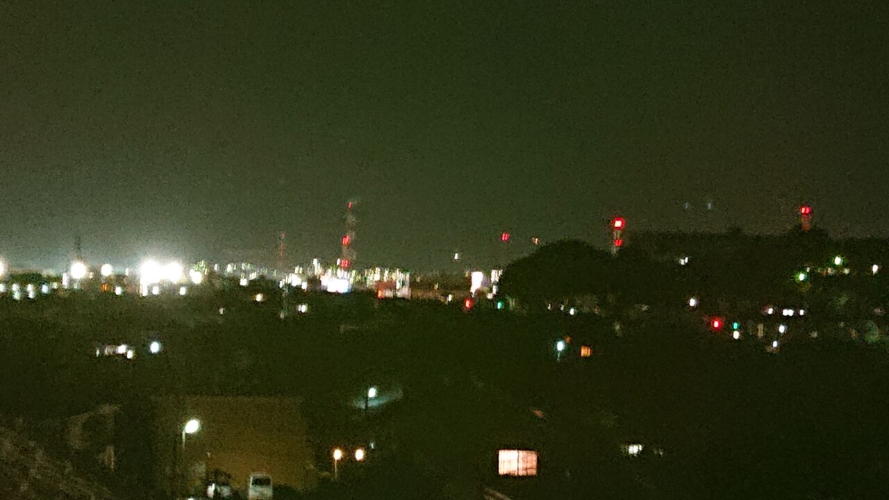 登った先に遠くコンビナートの夜景