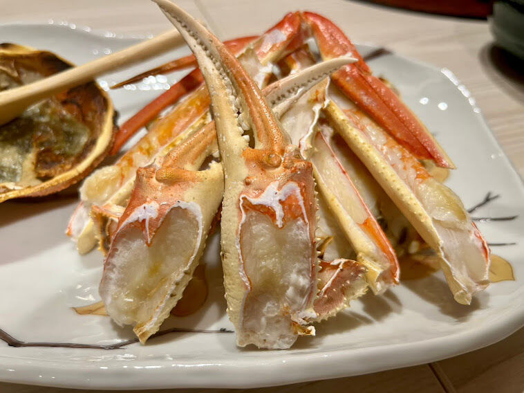焼きガニ。。これも最高。美味しいね。会話も途切れて黙食