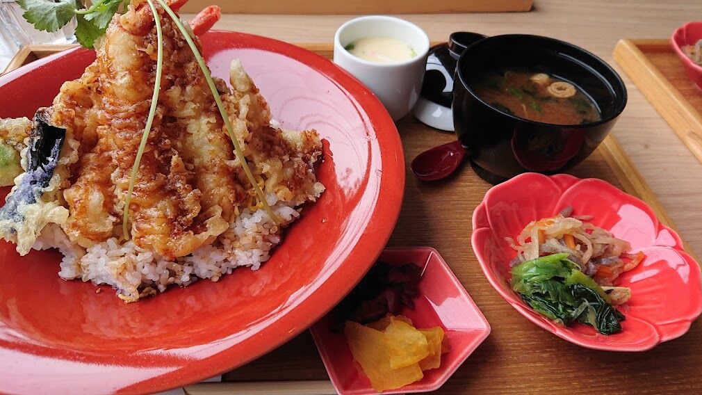小さな海老3尾。あなご(友人に)野菜などの天ぷら