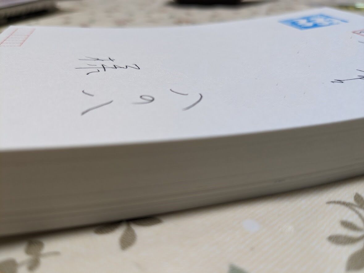 裏はPCで作りましたが、表書きくらいは自筆でと、意気込んで机に向かいましたが