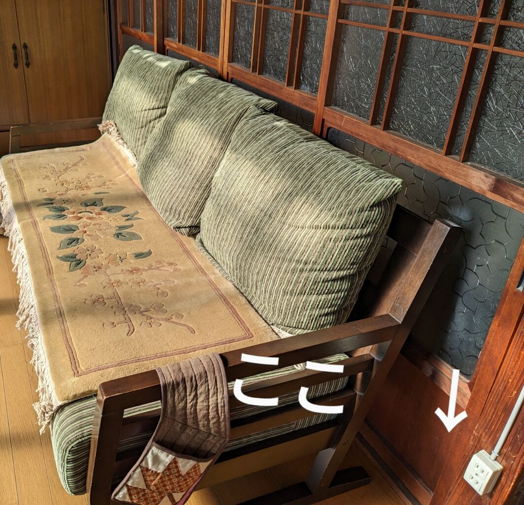南側の廊下に、ソファーを移動させました