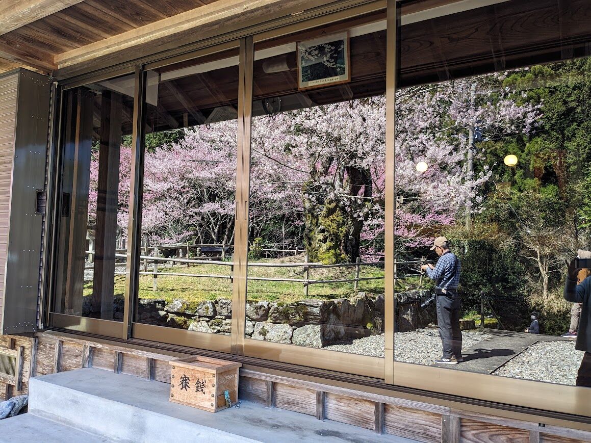 この大きなガラスの窓に写り込んだ桜も綺麗でした