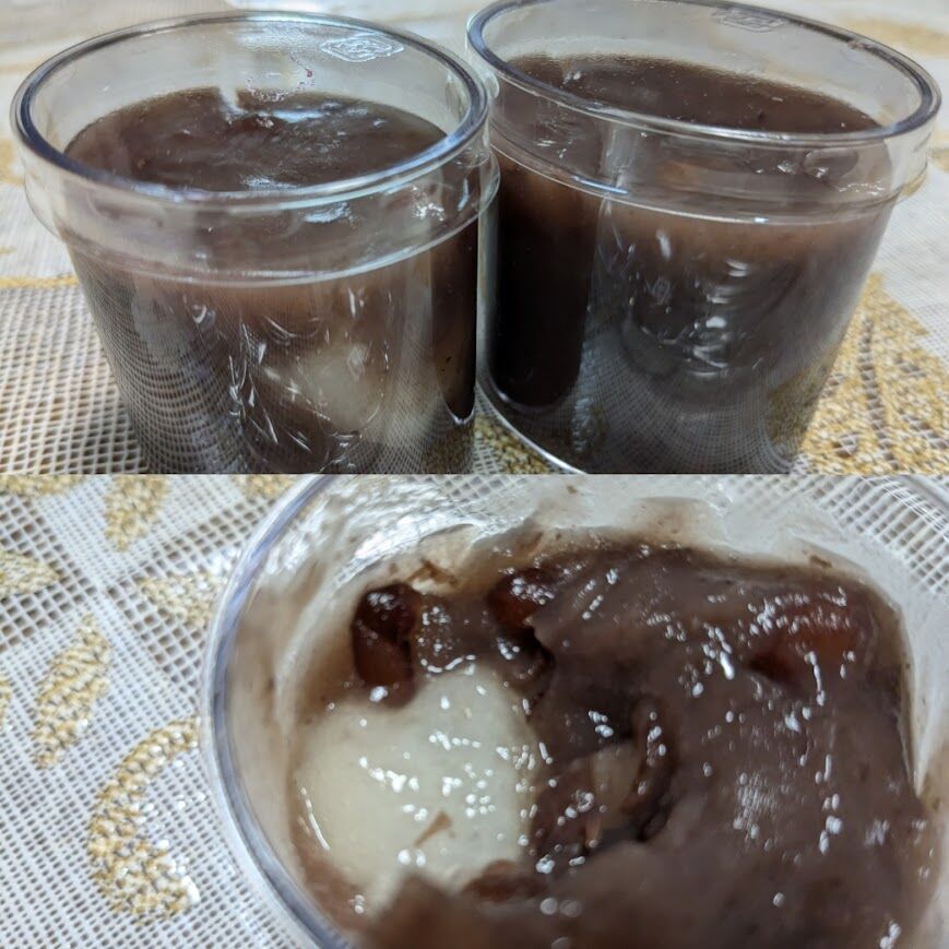 くず餅の中に粗みじんに切られたレモンの皮が入ってます
