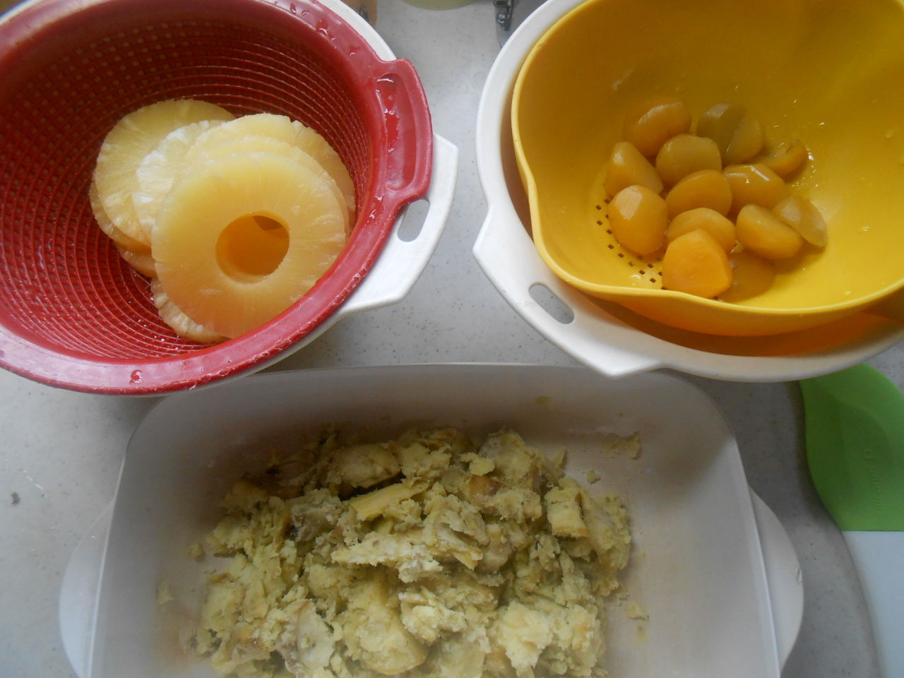 私は、サツマイモにパイナップルの缶詰