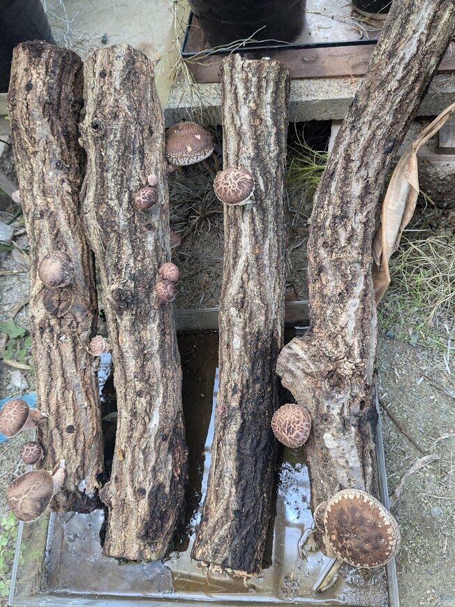 海老。舞茸。畑収穫のネギ。薩摩芋。生椎茸